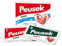 Peusek-Bath is a deodorant foot treatment that controls excess sweat from glands that can be regulated without hindering normal perspiration and eliminating the odor caused by decomposition.
